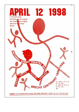 Many great artists have been featured and have worked on these posters. MF Hussain had designed the poster which was published in the year 2010, the theme of which was loneliness and love. The poster released in the year 1998 had a tribute to the German poet Bertolt Brecht, featuring his lines: