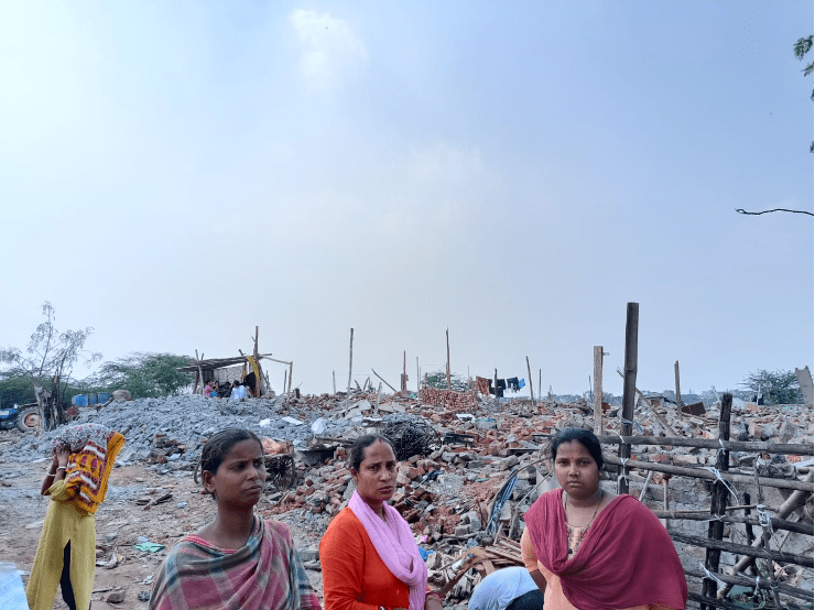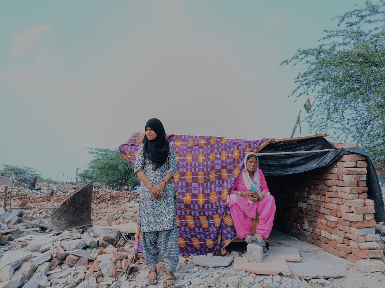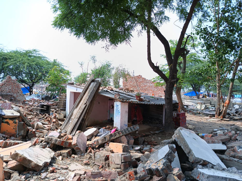 Beyond the financial cost entailed, there is also the aspect of emotional entanglement of the people with their homes. To simply think of people, especially those belonging to the lower socio-economic stratum, as numbered entries in statistics has long been the approach in technocratic capitalist economies, where such people could be simply picked off and resettled elsewhere without their consent. Priya Mondal, a resident who had her house demolished in Tughlaqabad, broke down recounting how the bulldozer breaking the floors and walls of her house felt as if it “hit her chest directly”. For the past one week, the people of the Chhuriya Mohalla have been living on top of the ruins of their homes, with no affordable housing available for renting, demarcating spaces by remembering and locating boundaries amidst ruins. Some have covered a particular heap of rubble with cloth, making a sort of tent, while others have dug trenches and taken shelter in them. Shabnam further explains how she was forced along with her family to take shelter inside the surrounding forest when rains poured constantly during the demolition. Families are seen desperately trying to dig through the broken concrete, in hopes of retrieving bedding, books, latrines and other possessions.