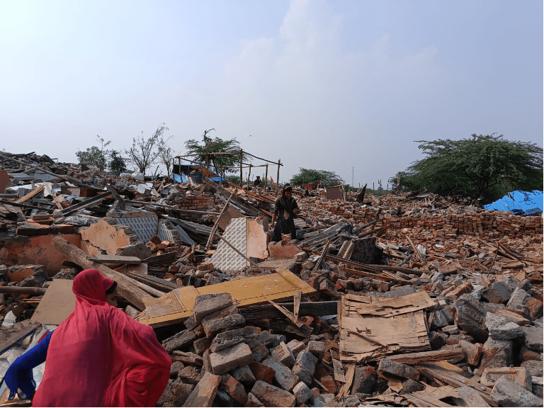 On entering the Tughlaqabad village, I encountered a post-apocalyptic scene straight out of a dystopian film. The entire area, as far as one could see, was covered with fallen concrete and bricks. This was the Chhuriya Mohalla, which was demolished entirely, without a forewarning on 30th April. The inhabitants of this locality have now been displaced and have lost their homes on which they had spent their meagre savings. While the Supreme Court and the Delhi Government had insisted that the ASI should find rehabilitation measures for these displaced people, nothing has been done so far in that respect. Sumana Roy, a domestic helper, implores that she had no clue that her house was set to be destroyed. She had rushed home from work on getting a call from her husband that bulldozers were in place for their house to be demolished. She found her entire establishment razed to the ground along with all their belongings buried deep within the rubble. This account is not an isolated one but is representative of the predicament of the inhabitants in general. While an ASI notice in January had been served ordering the inhabitants to vacate the place, the BJP MP Ramesh Bidhuri had assured them that no such demolition would take place. On the day of the demolition however, he was nowhere to be seen.